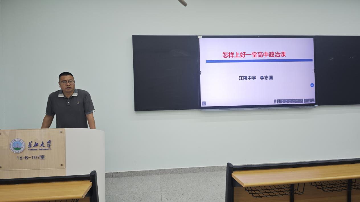 (通讯员 吴宇洁/文 吴宇洁/摄)为纪念我院思想政治教育专业建设50周年,进一步提升思想政治教育专业师范生的教学能力。4月19日,我院特邀请优秀毕业生江陵中学李志国老师,为思想政治教育专业学生开展题为《怎样上好一堂高中政治课》的专题讲座。本次活动聚焦新课程标准下的课堂教学创新,通过理论讲解与案例分析相结合的方式,为未来思政教师指明教学能力提升方向。
